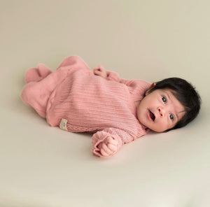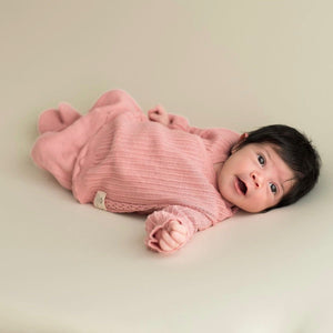 ¡Hola, familias! Preparaos para derretir corazones con este conjunto de primera puesta de Micu Micu en un delicioso color Rosa Chicle. Su punto fino y ligero es ideal para los días de entretiempo, ofreciendo la calidez justa con la tranquilidad del Algodón Orgánico y la artesanía local.