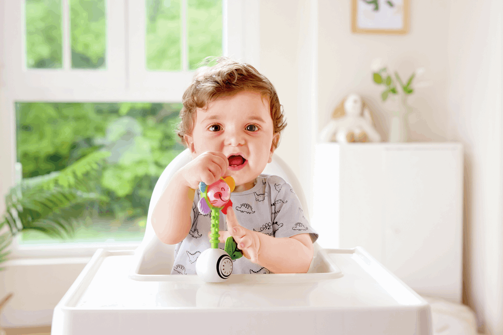 Combina múltiples estímulos en un solo juguete: los colores vibrantes de los pétalos estimulan la vista, el sonido del cascabel desarrolla el oído, la luz LED añade un elemento visual dinámico, y las diferentes texturas del mango y los pétalos fomentan la exploración táctil.