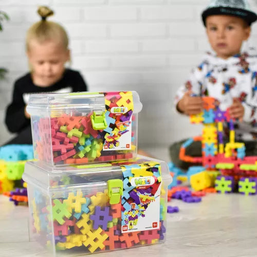 ✅ Contiene: 110 piezas grandes y coloridas + caja con asa