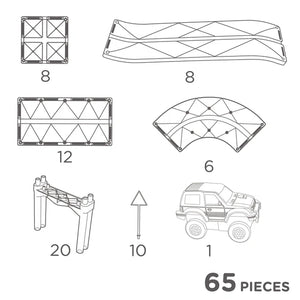 - 65 piezas magnéticas: Set completo con piezas especiales para circuitos de carreras