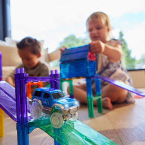 Este set combina construcción magnética con física básica y causa-efecto. Fomenta el desarrollo de habilidades STEM, pensamiento lógico, planificación espacial y comprensión de movimiento, velocidad y gravedad. Perfecto para experimentar con diferentes diseños de pistas y ver cómo afectan al movimiento.