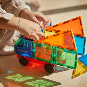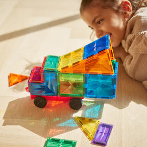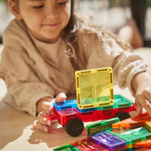 Descubre el Pack Wheels de Cleverclixx con 25 piezas magnéticas que incluyen ruedas para dar vida a tus creaciones. Construye coches, camiones, trenes y todo tipo de vehículos que realmente ruedan, combinando construcción magnética con movimiento real.