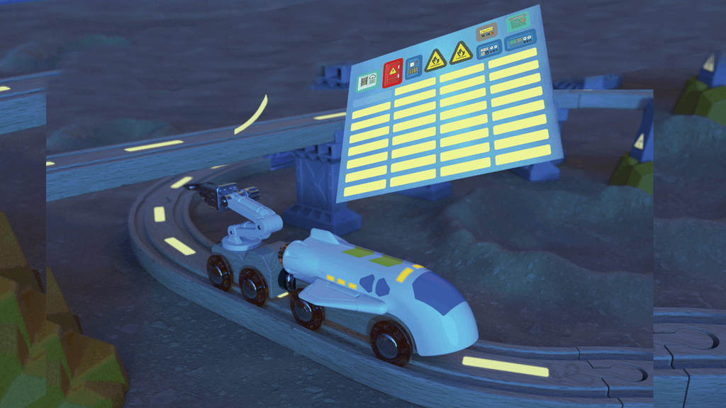 - Tren espacial transformable: Con alas plegables que combinan la emoción ferroviaria con la exploración cósmica