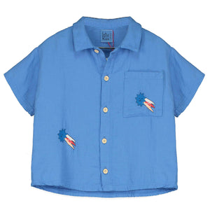 Camisa de manga corta en suave algodón 100% orgánico con un encantador estampado de estrellas de la suerte. Perfecta para el día a día, combina comodidad y estilo con un diseño dulce y alegre que encantará a quien la lleve.
