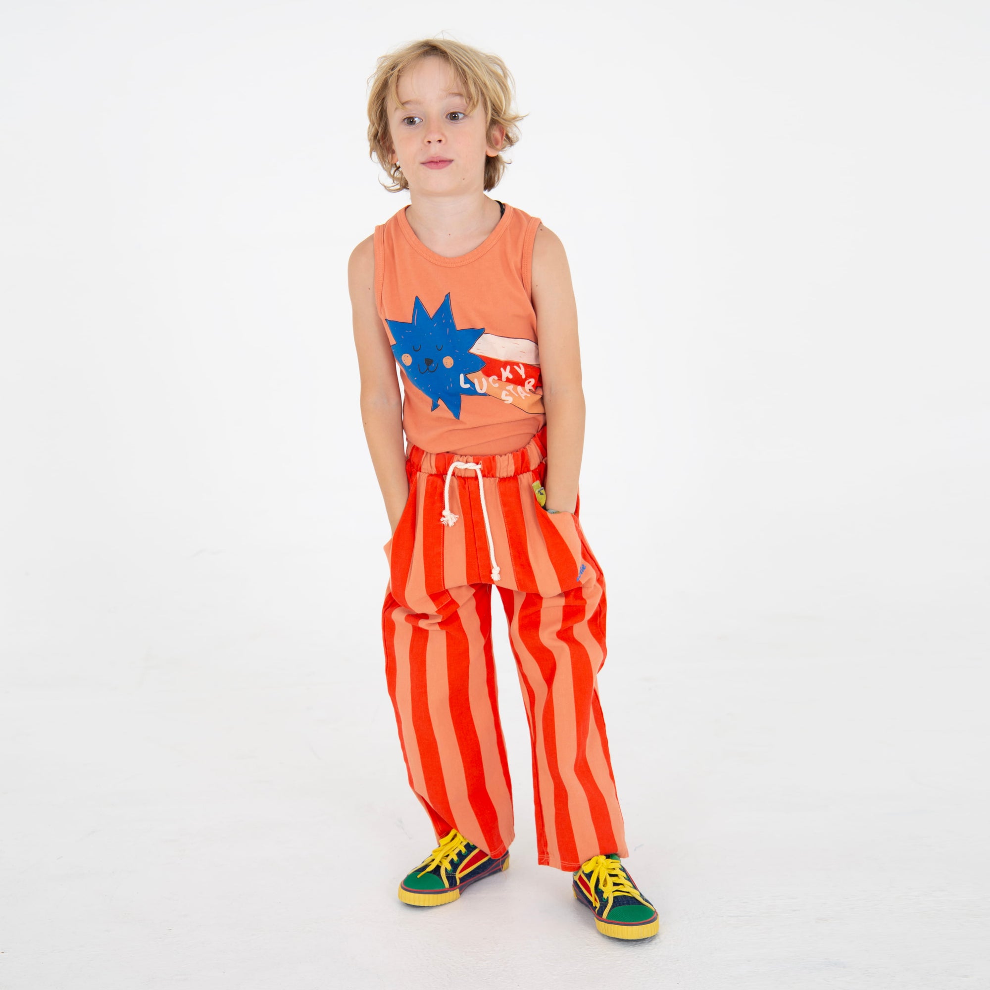 Camiseta de tirantes en suave algodón orgánico con un encantador estampado frontal de estrella de la suerte. Perfecta para los días de calor, combina comodidad y estilo con un diseño dulce y alegre que encantará a quien la lleve.
