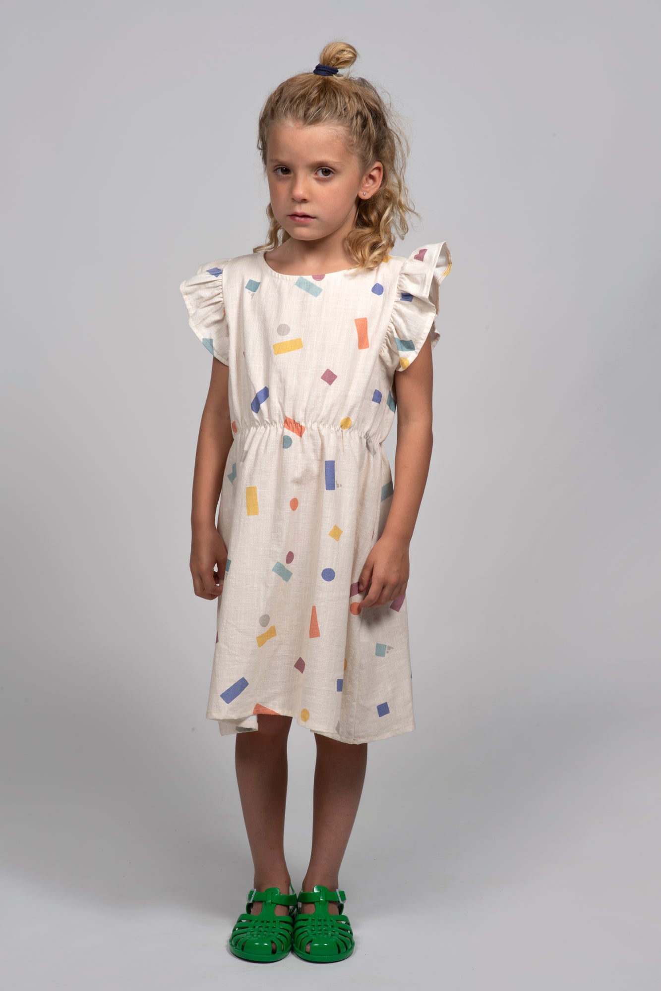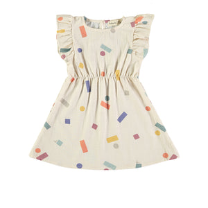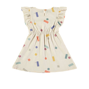 Vestido con un divertido estampado de bloques de colores desordenados, perfecto para quienes buscan prendas originales y llenas de energía. Confeccionado en 100% algodón orgánico de alta calidad con tela no elástica, este vestido combina comodidad, estilo y frescura para el día a día.
