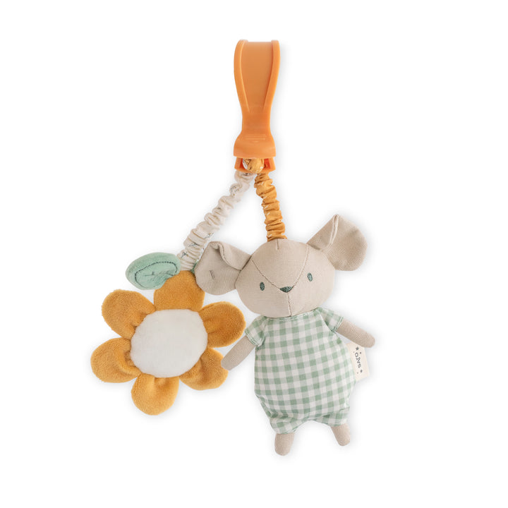 ¡Los paseos serán más divertidos con nuestro sonajero mousie con pinza! Aumenta la coordinación mano-ojo y estimula la curiosidad del pequeño con su suave peluche, sonajero, espejo y texturas. Fácil de sujetar en la cuna, carrito o parque. Hecho de poliéster y algodón, lavable a máquina. ¡Hazlo parte de tu colección para la hora de jugar y aprender!