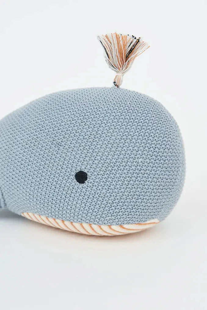 Un peluche con todo el encanto marinero de Batela. Tejido a mano en punto crochet de algodón suave y con relleno de poliéster, esta ballena es el compañero perfecto para los primeros años. Su textura artesanal la hace única y especialmente reconfortante para las manitas pequeñas.