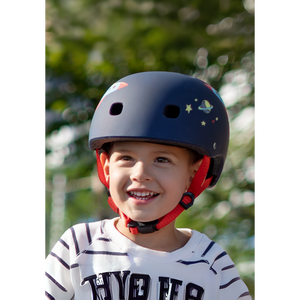 Este casco hace que la seguridad sea divertida. El diseño de cohetes y el espacio motiva a los peques a llevar el casco sin protestar, mientras que la luz LED trasera intermitente añade un elemento de visibilidad extra para mayor tranquilidad. El sistema de ajuste trasero permite adaptar el casco perfectamente a la cabeza, garantizando que se mantenga en su lugar durante la actividad.