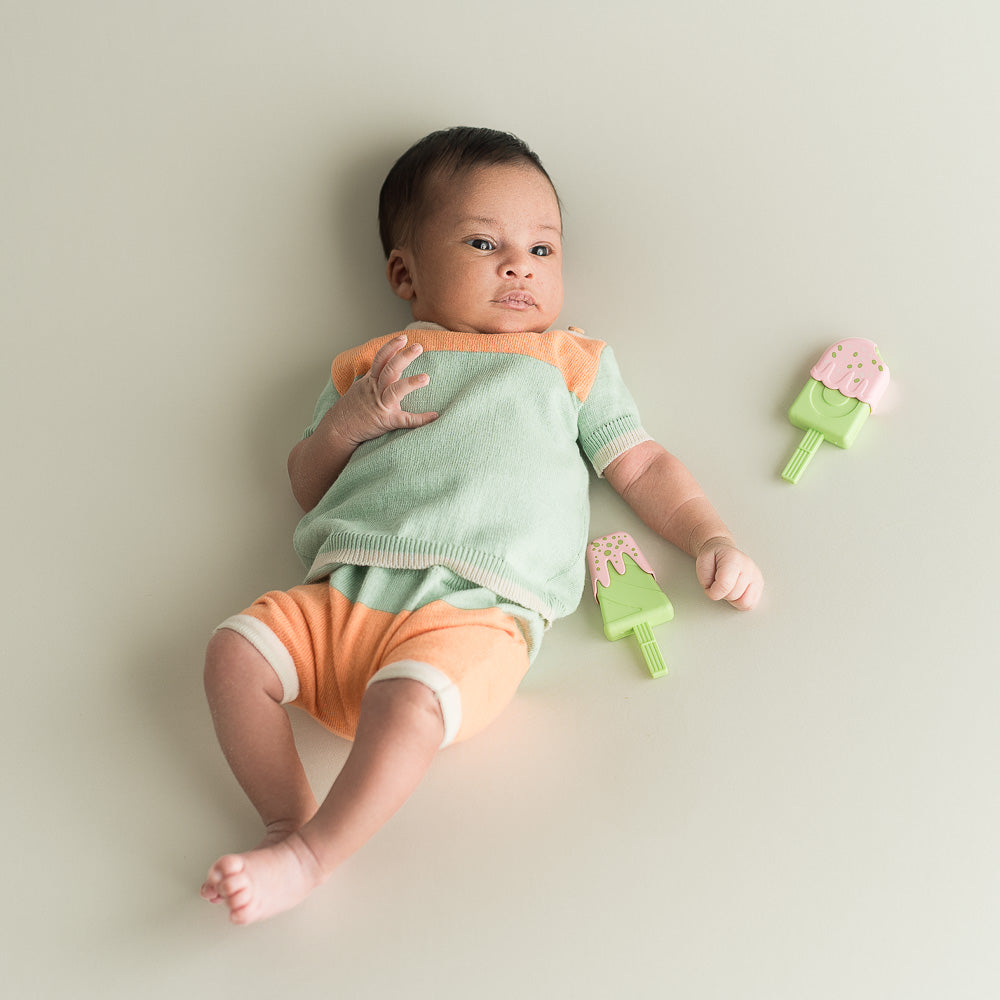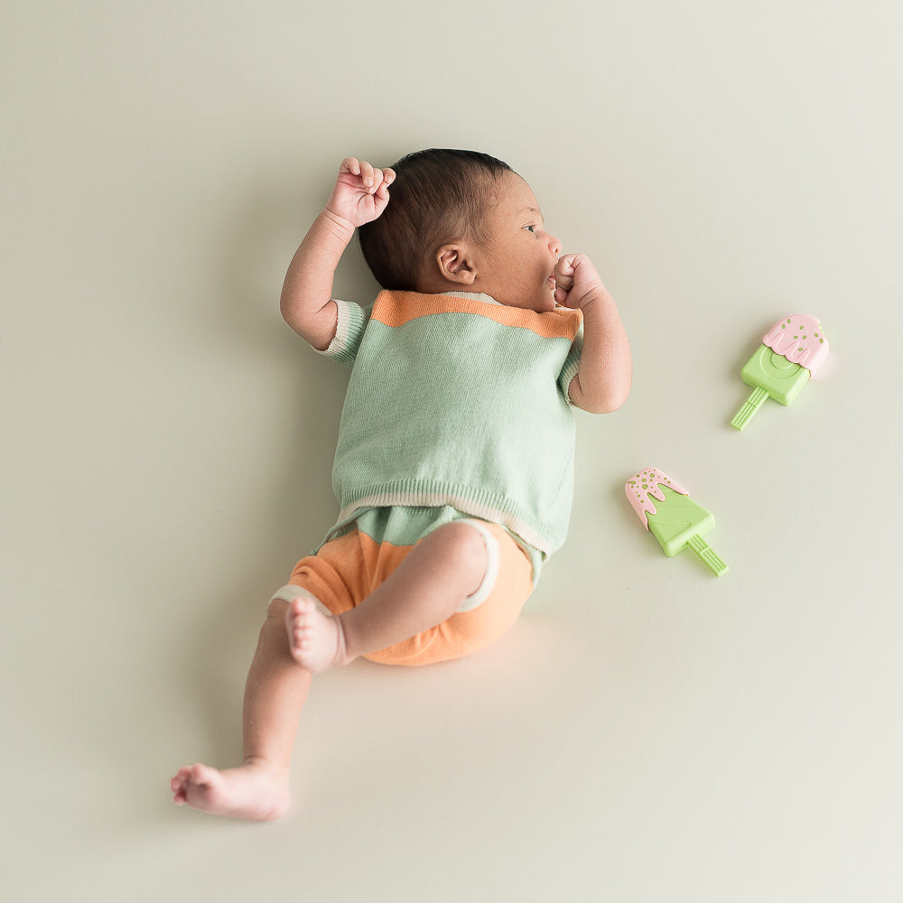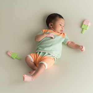 Set Recién Nacido Camiseta y Pantalón Corto – Verde Menta y Naranja | Micu Micu