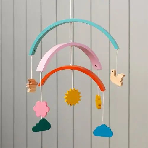Descubre el encantador móvil de madera arcoíris de Rex London, una pieza decorativa perfecta para habitaciones infantiles. Con sus colores vibrantes y diseño colgante, este móvil añade un toque de alegría y movimiento suave que capta la atención y estimula visualmente.
