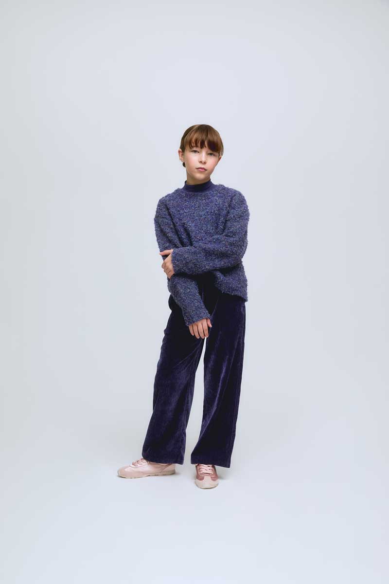 Este jersey de Compañía Fantástica Mini destaca por su original color morado jaspeado, que combina tonos intensos y suaves para un efecto único y fácil de llevar. Confeccionado en un punto suave y agradable, ofrece comodidad durante todo el día. Su diseño recto, con cuello redondo y acabados en canalé, lo hace versátil y perfecto para combinar con vaqueros, pantalones anchos o faldas.