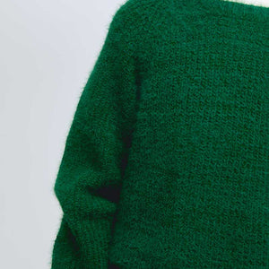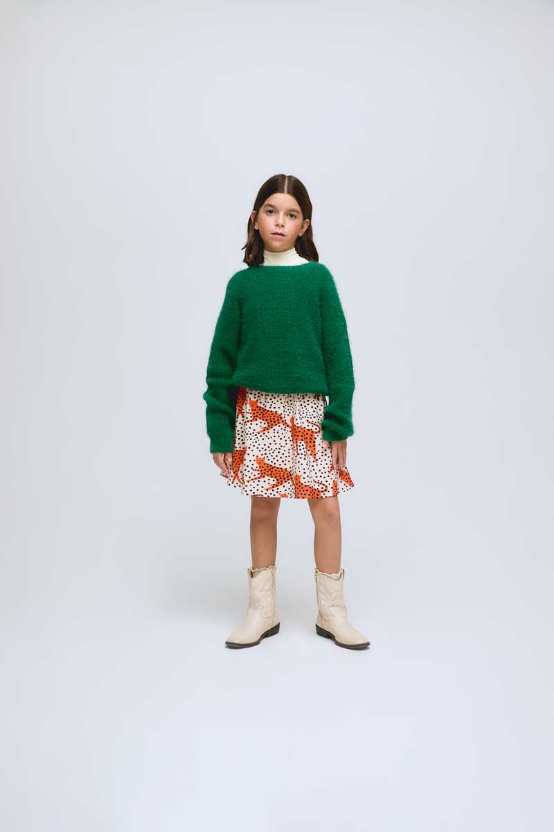 Este jersey de punto de Compañía Fantástica Mini destaca por su color verde intenso, un tono alegre y fácil de combinar que aporta vida a cualquier look. Confeccionado en un tejido suave y agradable, cuenta con cuello redondo y acabados en canalé para un ajuste cómodo y duradero.