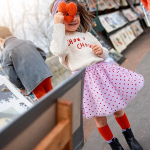 La Falda Tul Puntos de Sproet & Sprout es pura diversión para los looks de fiesta o para dar un toque especial al día a día. Confeccionada en suave tul lavanda, destaca por su alegre estampado de puntos rojos, creando un contraste original y lleno de encanto.