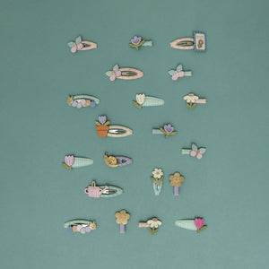 The pack includes five click-clack clips, easy to open and close. The dinosaurs are made from a mix of metallic and glittery fabrics in vibrant colors, and feature shiny "spines" that give them a total diva touch.