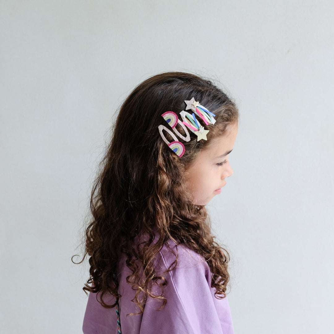 Add a touch of magic and color to any hairstyle! This cheerful and vibrant set of Mimi & Lula clips is the perfect dose of glitter and fantasy for everyday wear or any special occasion.
