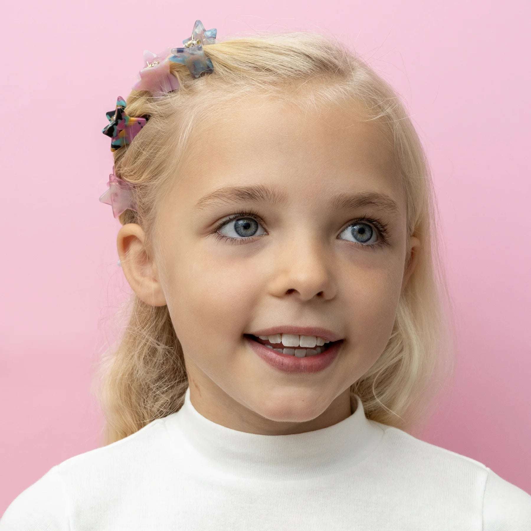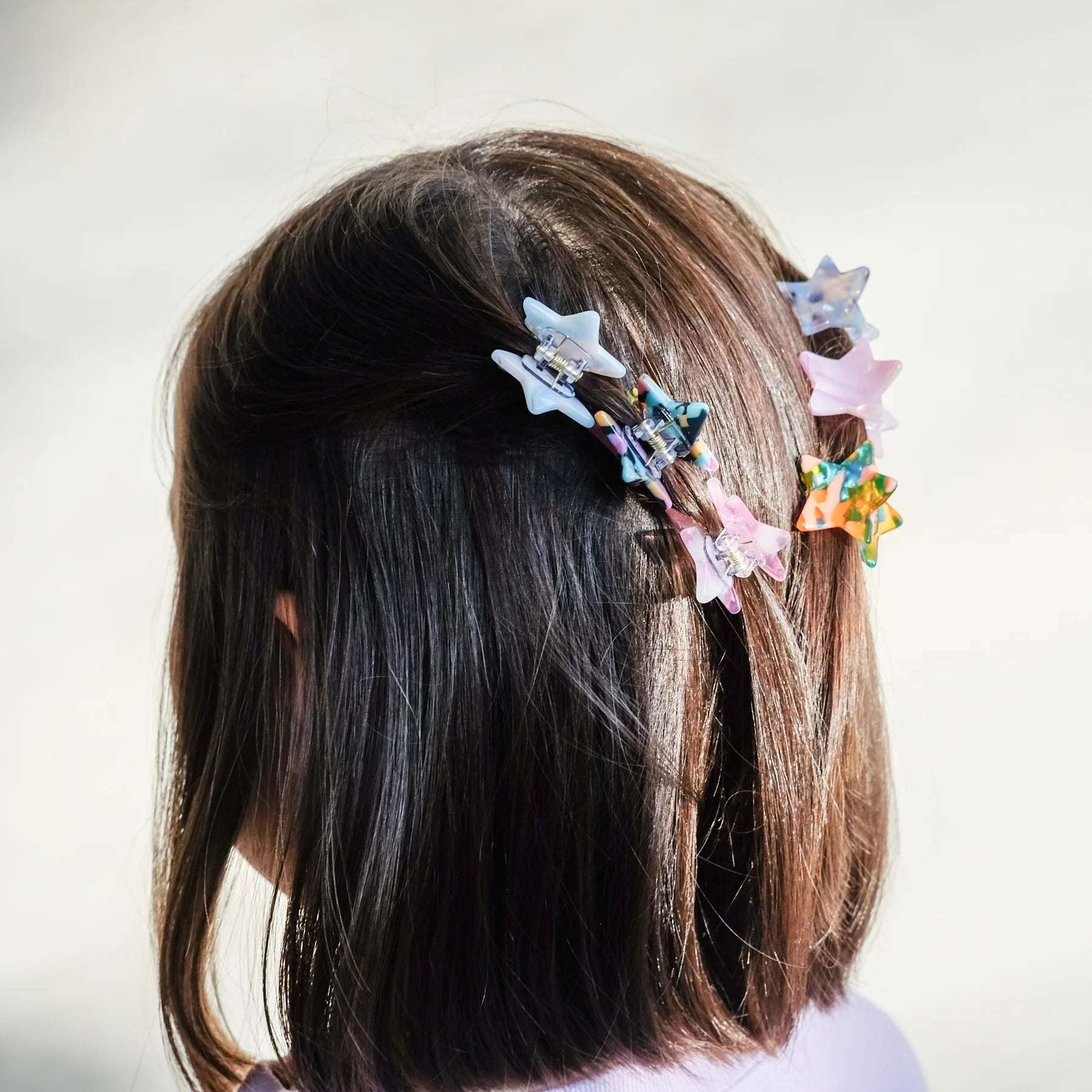 Add a fun and bright touch to any look with this set of six star-shaped clips. They're made of cellulose acetate, a durable and environmentally friendly material derived from cotton and wood fibers.