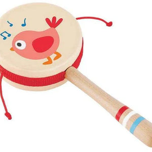 Un clásico reinventado para las manos más pequeñas. El Sonajero Tambor Twittering Bird de Hape es una versión moderna del tradicional tambor chino, pensado para calmar, estimular y acompañar a bebés curiosos a partir de 10 meses. Su diseño en madera, suave al tacto y muy resistente, junto con su ilustración de pajarito, aporta un toque tierno y contemporáneo al juego sensorial.
