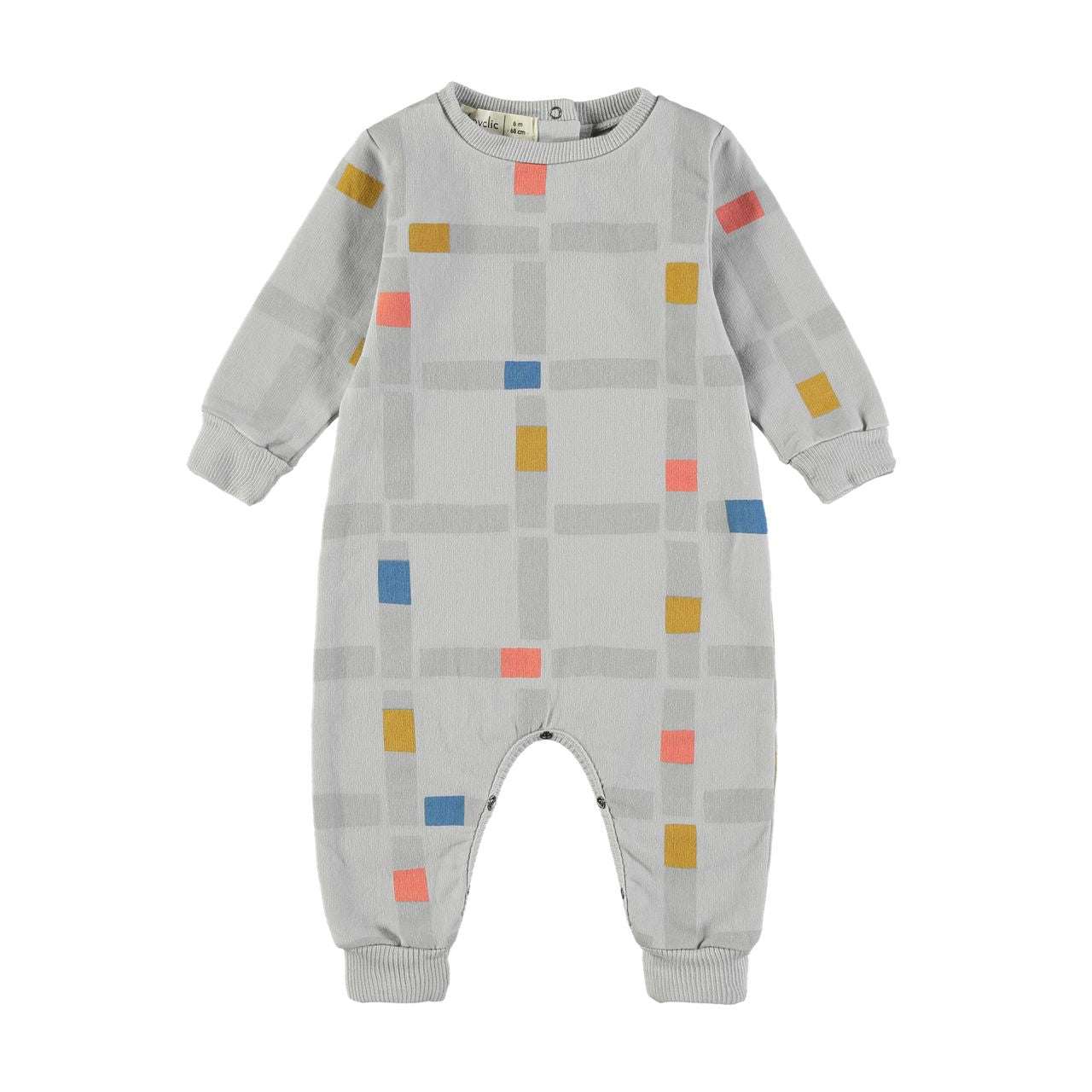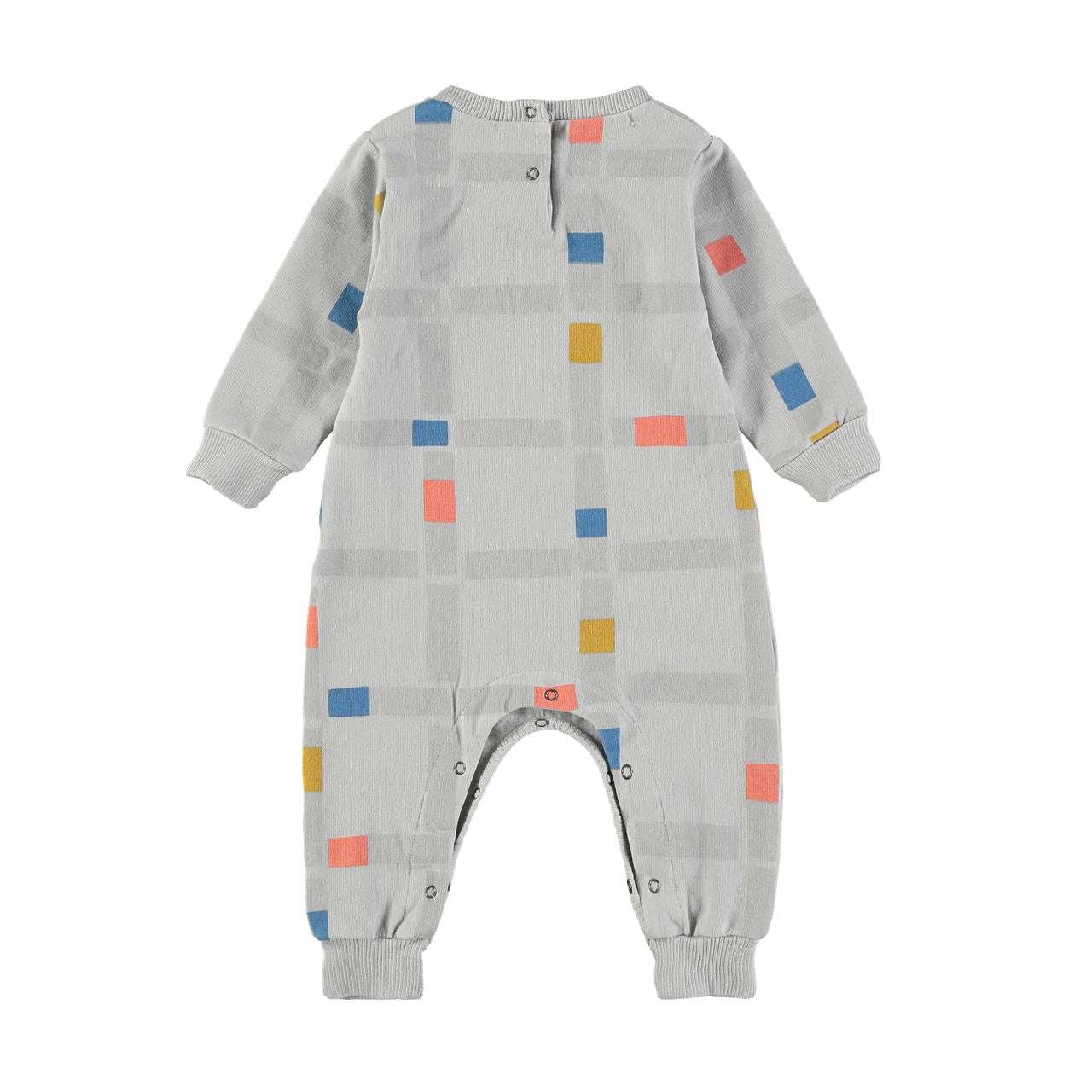 Short-sleeved T-shirt made from 100% organic cotton single jersey, soft and breathable, ideal for sensitive skin. It features a shoulder opening with snap fasteners for easy changing. The neck, sides, and hem are finished with piping for structure and a polished finish. Its original blue and red block print adds a fun and original touch of color to any look.