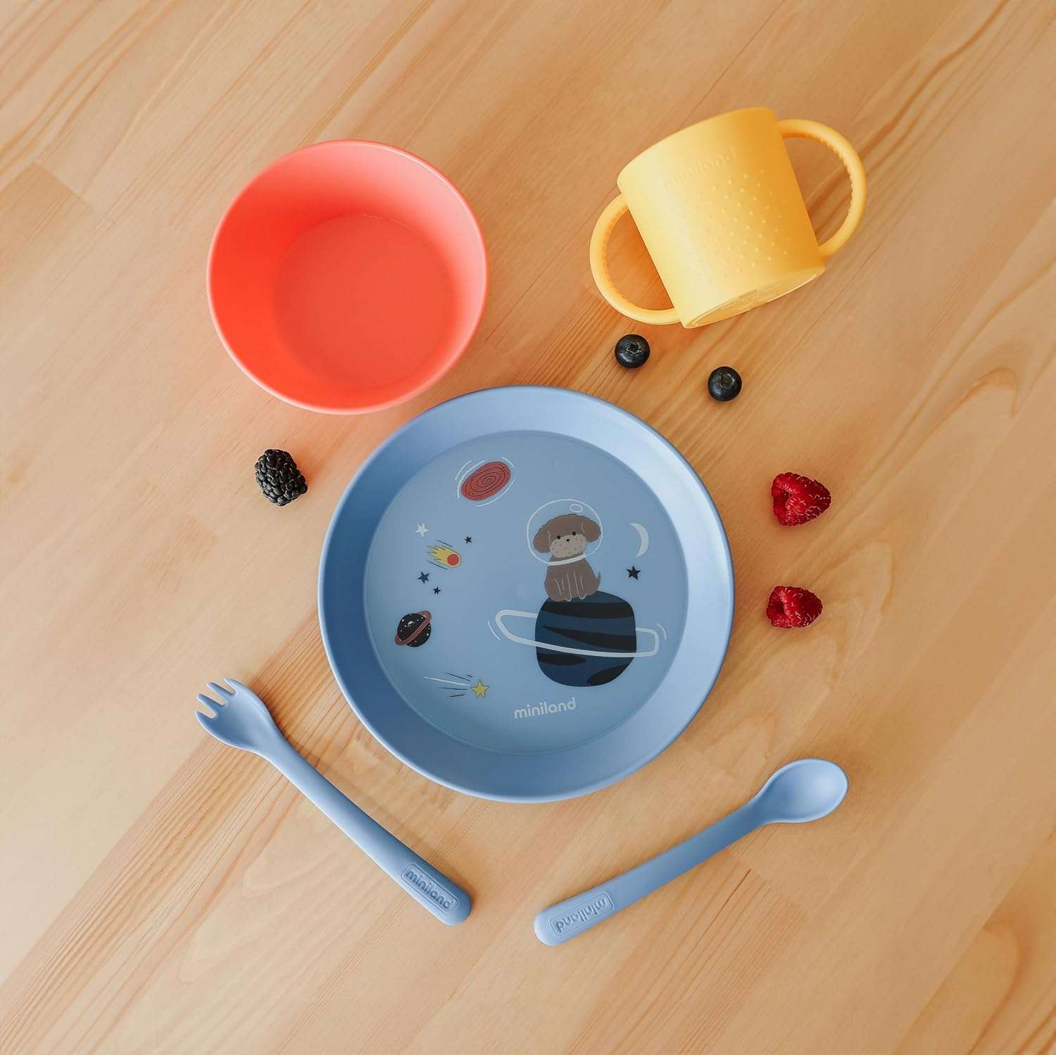 Miniland Space Dog Children's Tableware : practical, fun, and designed to help little ones gain autonomy while enjoying every meal.
