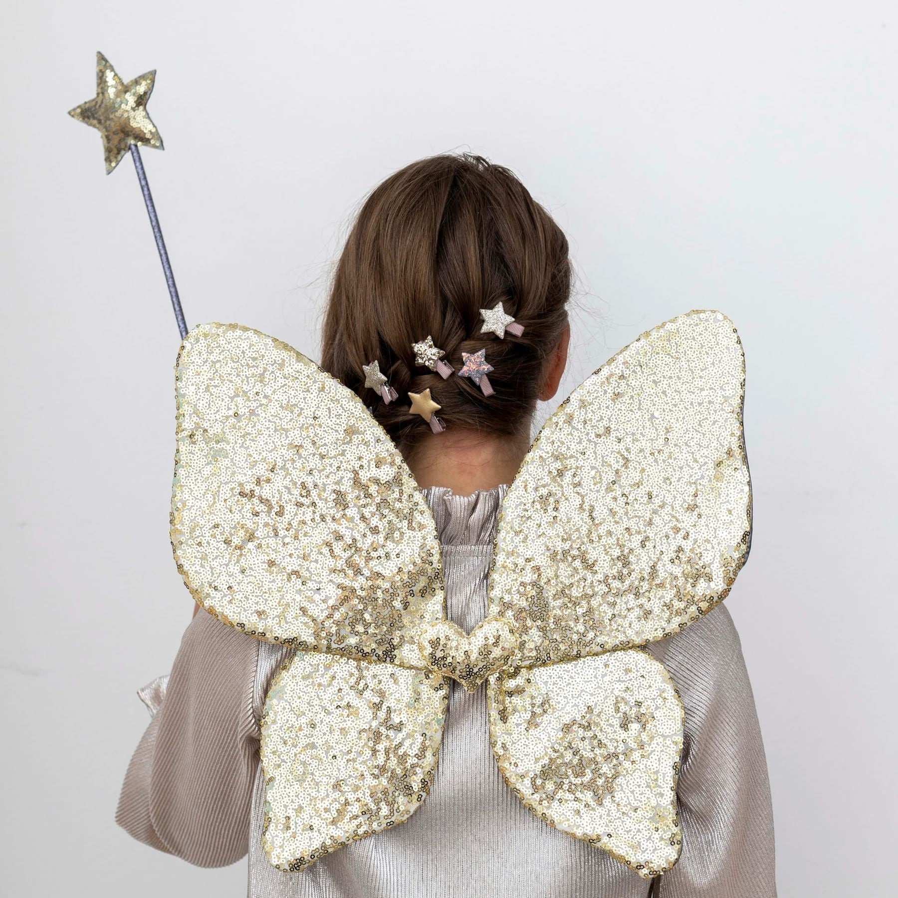 If you like to shine at all costs, these golden sequin wings will be your favorites. You will be a fairy or a flying creature invented by you and you will shine more than anyone else.