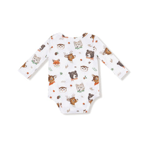 Inspired by the tranquility of the forest and its tiny inhabitants, this ultra-soft bamboo long-sleeve bodysuit from Angel Dear wraps your baby in comfort and tenderness. Its charming print features owls, bears, and foxes, creating a scene full of magic and nature.