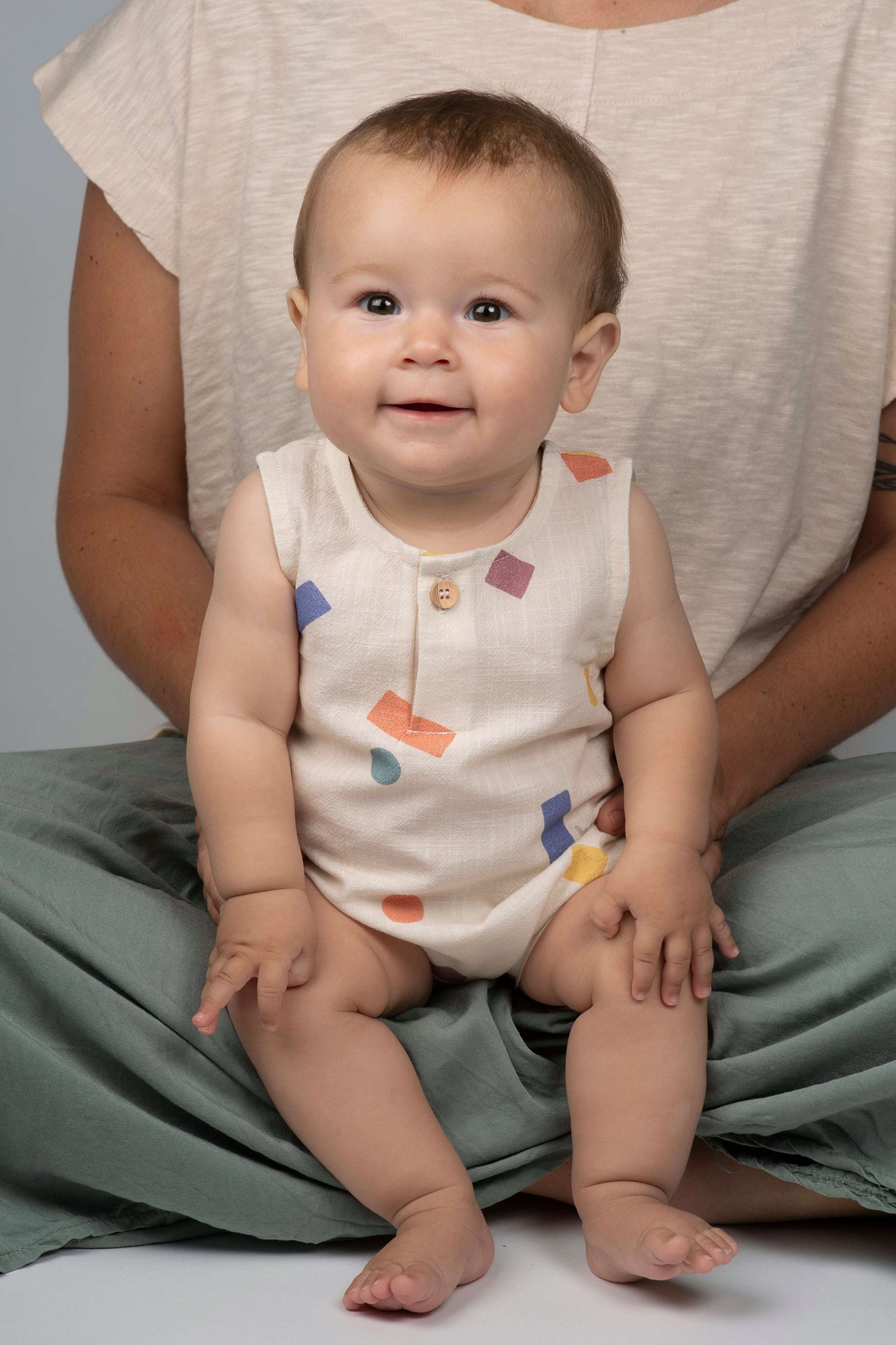 Pelele con un divertido estampado de bloques de colores desordenados, perfecto para quienes buscan prendas originales y llenas de energía. Confeccionado en 100% algodón orgánico de alta calidad con tela no elástica, este pelele combina comodidad, estilo y funcionalidad para el día a día.