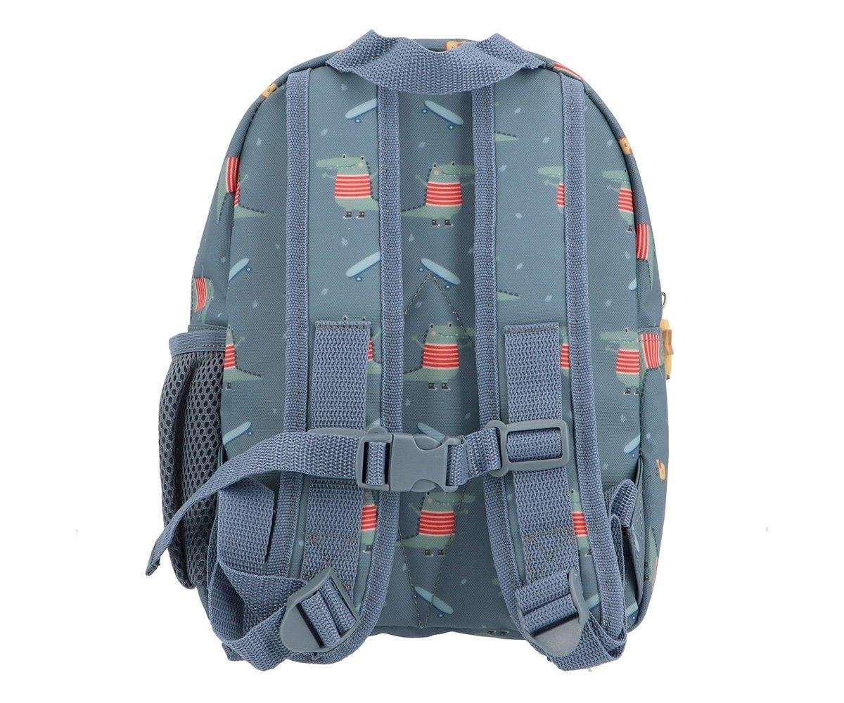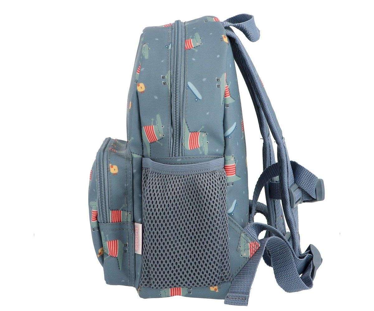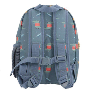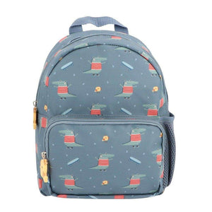 Cream-coloured backpack with animal print, waterproof and easy to clean. Made from recycled fabric and with a practical front pocket.