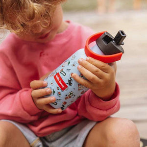 Con su formato de 350 ml y fabricada en acero inoxidable, mantiene el agua fresquita o las bebidas calentitas durante horas. El tapón con pajita integrada facilita la hidratación sin derrames, y su asa la hace muy fácil de llevar a cualquier parte. Un básico reutilizable para familias que buscan estilo y funcionalidad.