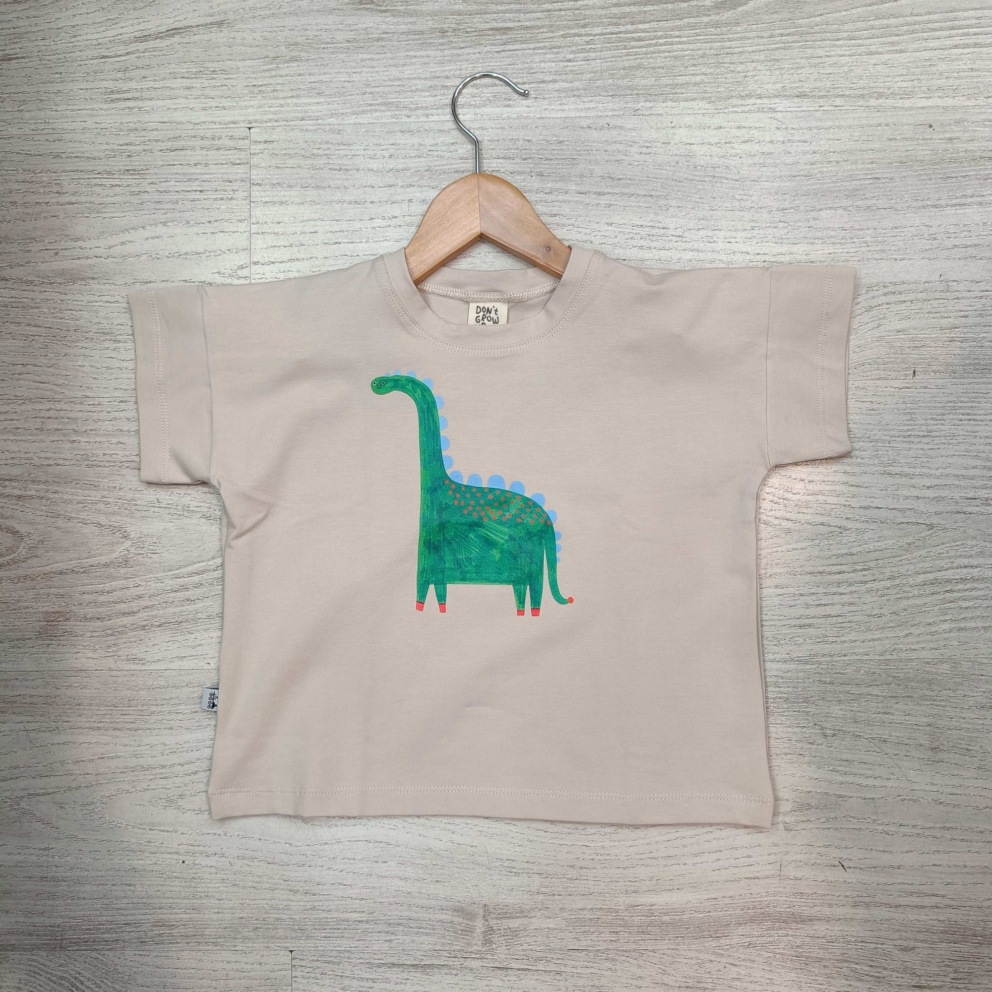 Camiseta beige de algodón orgánico con un divertido dino verde – Don't Grow Up