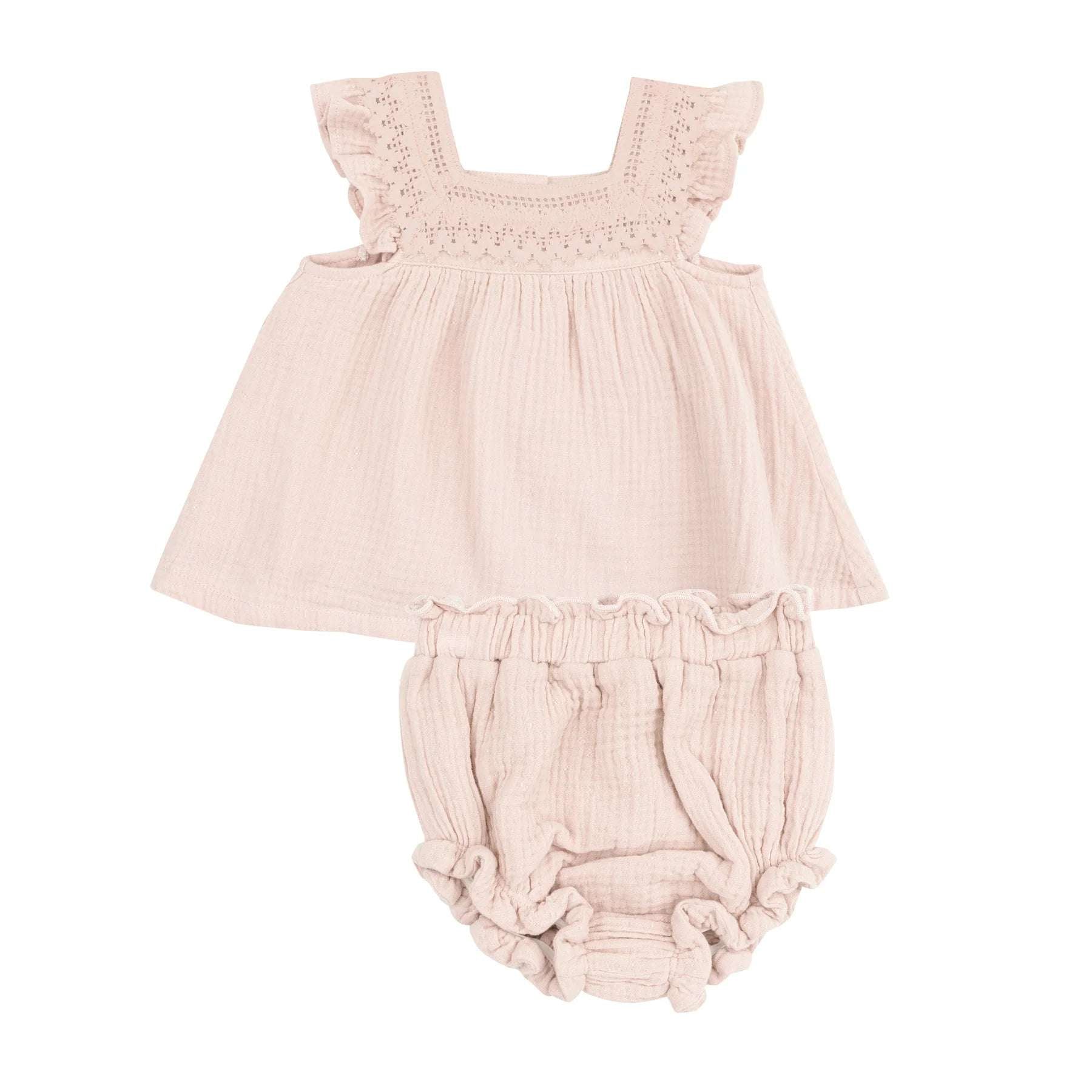 Conjunto de muselina orgánica – Top con detalle de crochet + cubrepañal