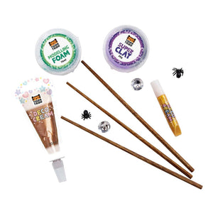 ¡Conviértete en un joven hechicero con el set "Crea Varitas Mágicas"! Incluye todo lo necesario para diseñar tus propias varitas mágicas encantadas: 3 varitas de madera, arcilla Super Clay en dos colores, cremas decorativas metálicas, espuma modeladora, adornos como joyas y arañas brillantes, y una guía visual paso a paso. Ideal para edades de 5 a 9 años. ¡Un regalo perfecto para estimular la creatividad y la diversión mágica!