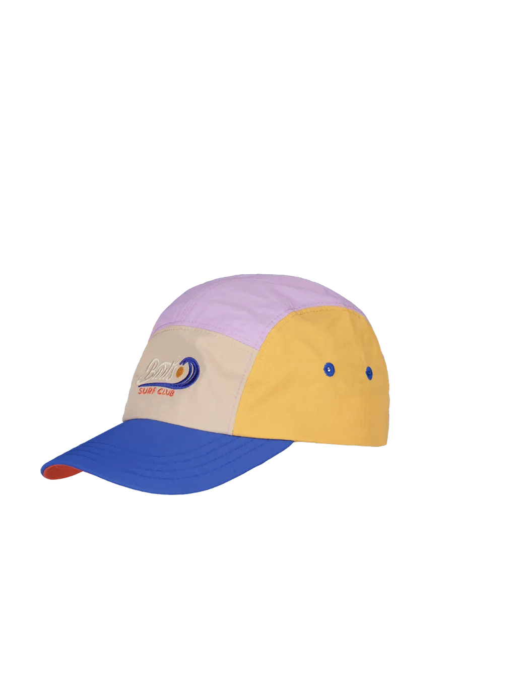 La gorra Sumney de Barts es una gorra de 5 paneles con un aire retro inconfundible. Su combinación de lila, amarillo y azul eléctrico, junto con el bordado frontal, la convierten en una pieza con mucho carácter para los días de sol.