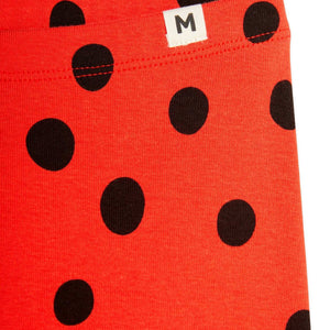 Pantalones cortos de ciclismo diseñados con un estampado de puntos en toda la prenda y confeccionados con 100 % algodón orgánico con certificación GOTS. Diseñados con cintura elástica para mayor comodidad.