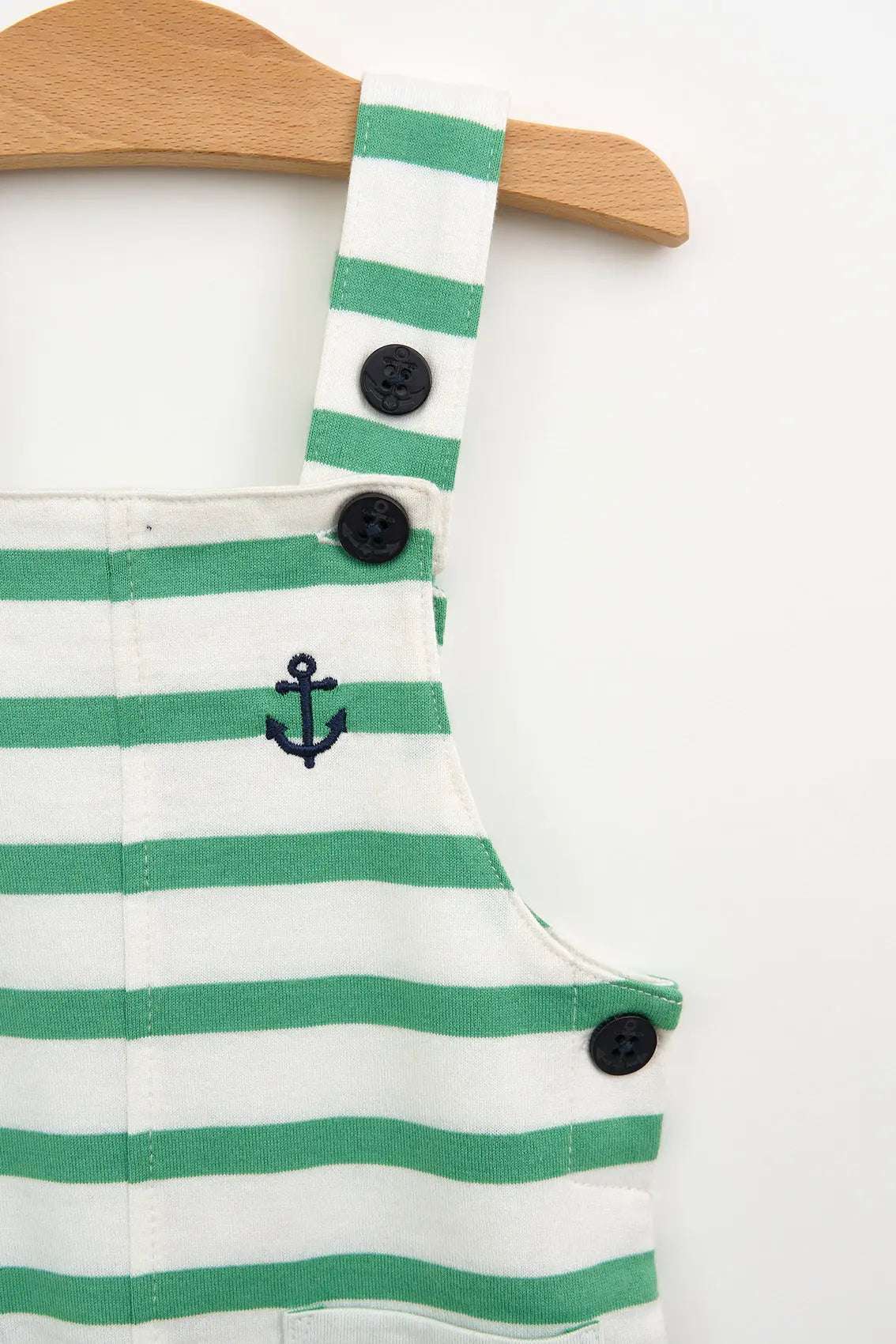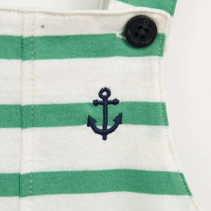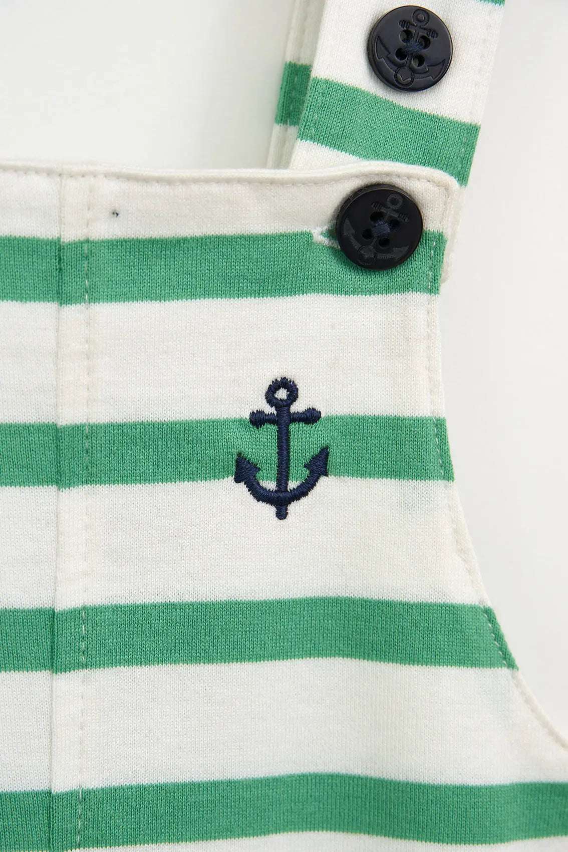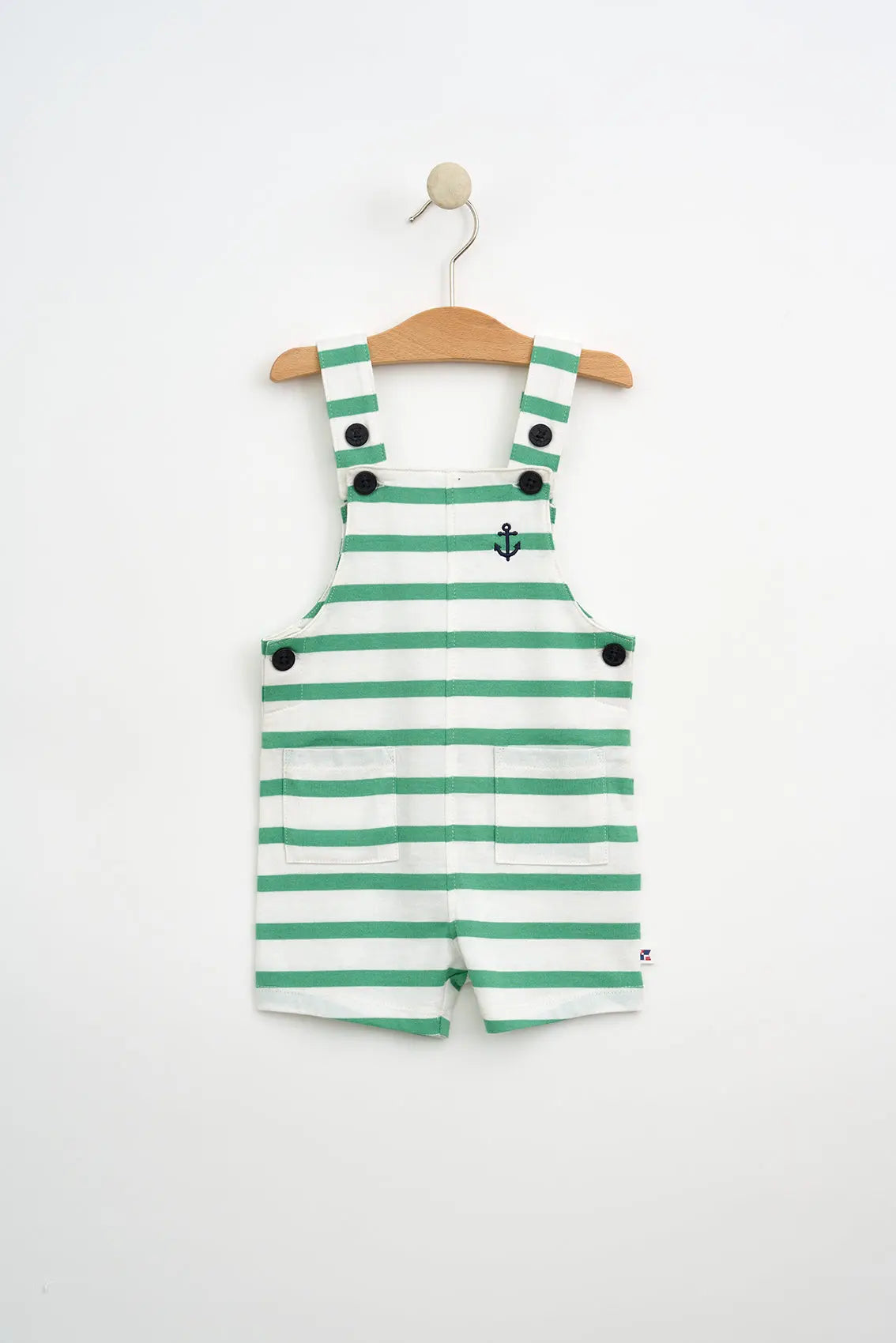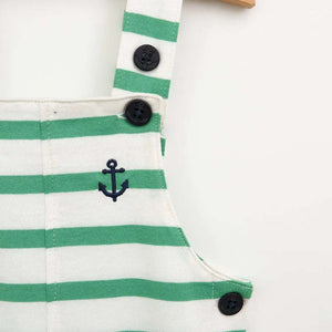 Tiene tirantes ajustables para acompañar el crecimiento del peque, botones con detalle de ancla y un pequeño bordado en el pecho que le da ese toque marinero tan bonito. Además, lleva dos bolsillos delante, perfectos para llevar una piedra, una hoja o cualquier pequeño tesoro.