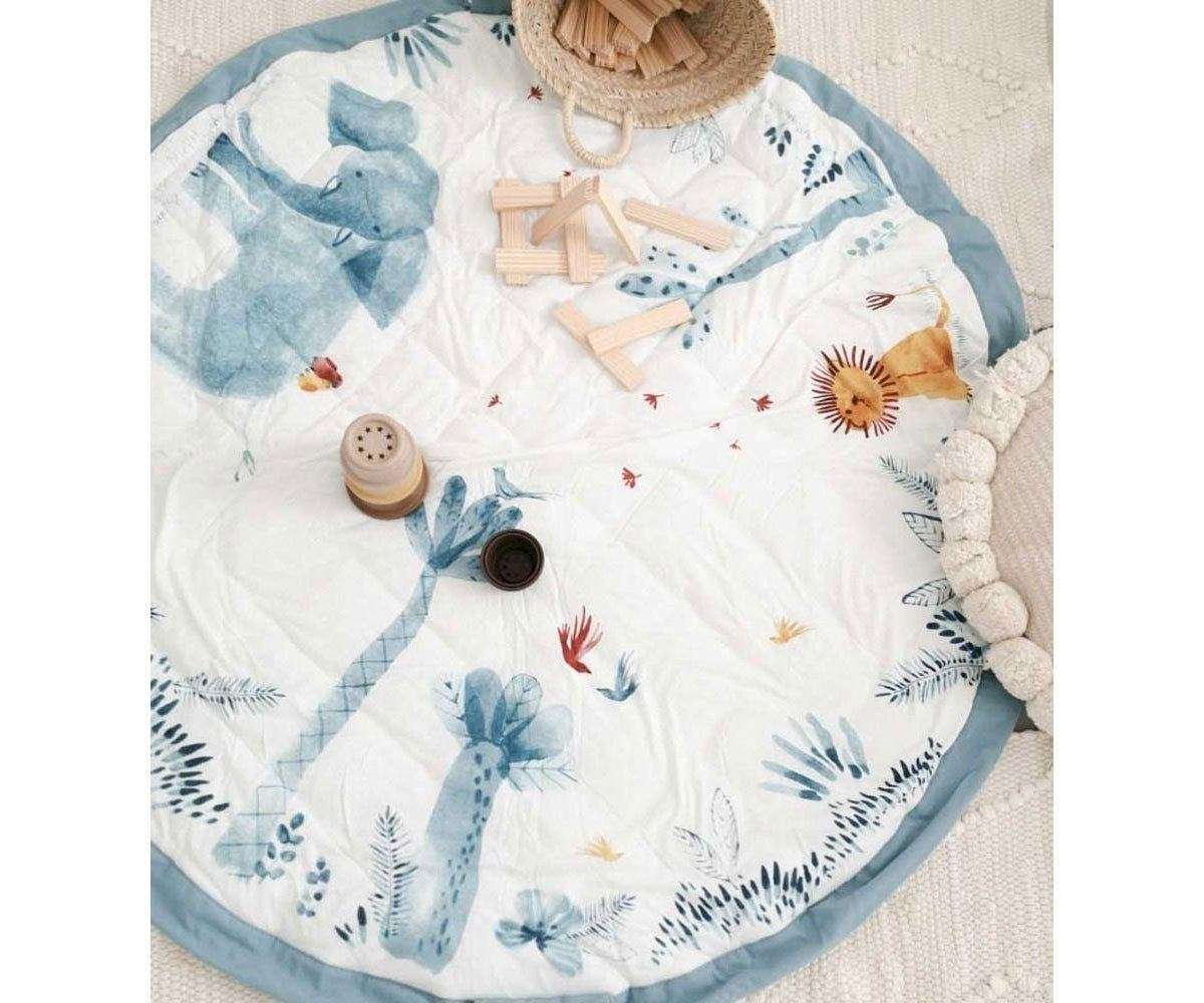 Con un diseño encantador de inspiración salvaje, está fabricada en suave jersei de algodón acolchado, ideal para el suelo y perfecta para bebés y niños pequeños. Y lo mejor: cuando termina el juego, ¡se convierte en una práctica bolsa para guardar juguetes o incluso en bolsa de maternidad! Diseñado en colaboración con la marca de juguetes Moulin Roty.