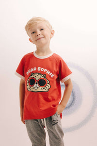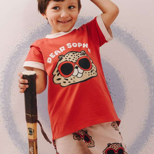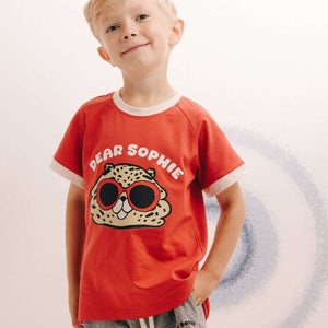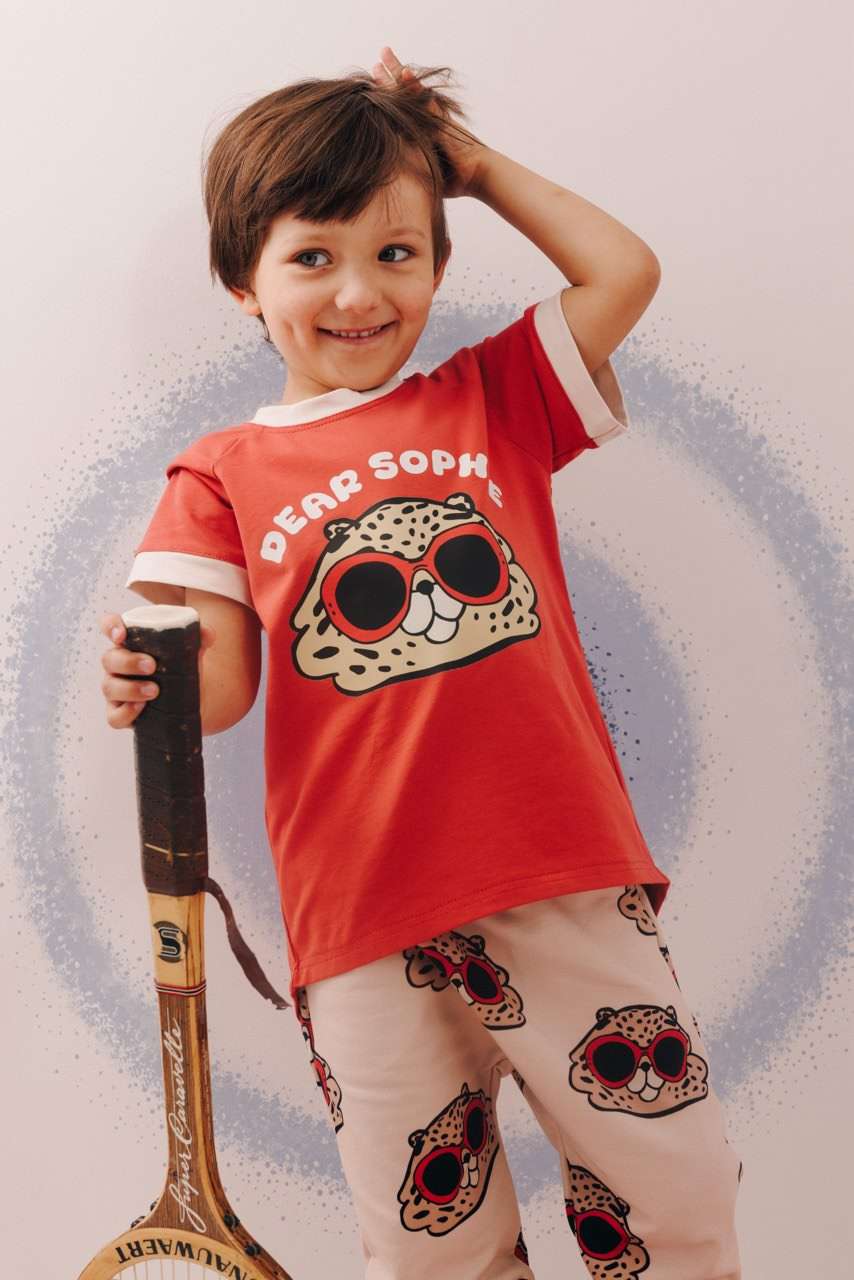 Esta camiseta roja con una ilustración de hamster y gafas de sol es perfecta para los pequeños con actitud. Confeccinada en algodón orgánico, garantiza comodidad y suavidad para todo el día