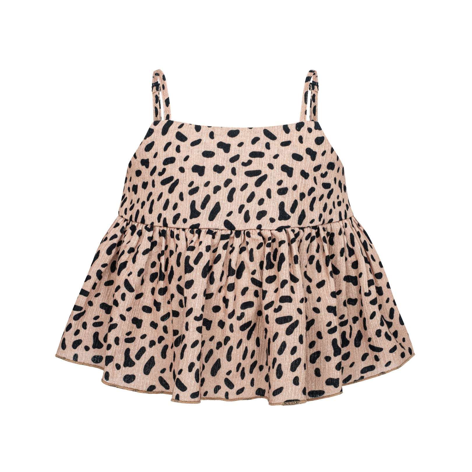 Este top de tirantes con estampado de manchitas negras sobre fondo marrón clarito es ideal para cualquier look. Fácil de combinar y original. Ideal para esta primavera verano