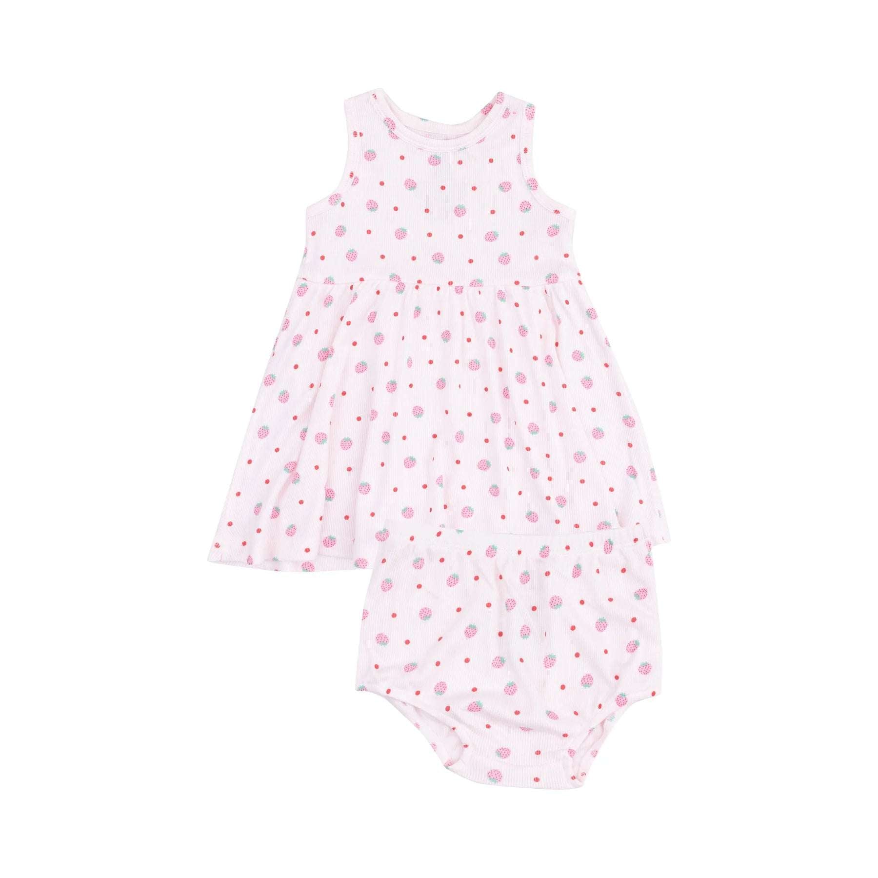 ¡Deja que tu peque brille con este encantador vestido sin mangas de Angel Dear! Confeccionado en suave canalé de modal, este conjunto está pensado para los días soleados y llenos de juego. Las tallas de 12 y 18 meses incluyen un cubrepañal a juego, ideal para mantener el look completo y cómodo. Para las tallas mayores (a partir de 2 años), el vestido se presenta solo, manteniendo el mismo estilo ligero y veraniego.